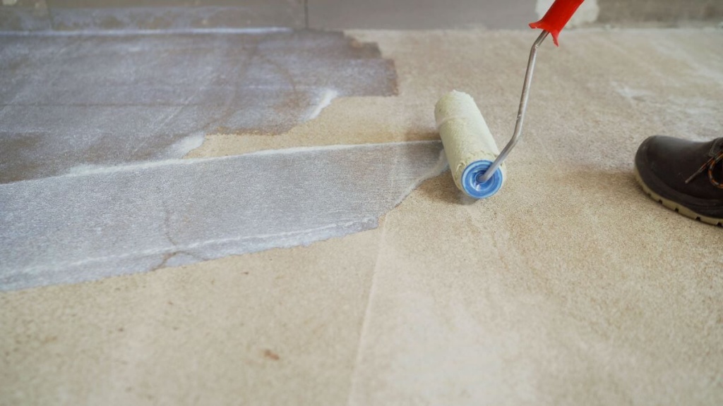 Подготовка. Основание очищается от грязи и пыли, при этом желательно применять строительный пылесос, который позволит удалить загрязнения из мелких трещин и сколов, где часто скапливается большой объем пыли. Цементная стяжка простукивается молотком для проверки на наличие трещин и участков отслоения от пола. Если таковые имеются, старая стяжка удаляется и укладывается новая. Не нужно экономить на этом этапе, потому что отслаивающееся основание обернется треснувшей плиткой и другими проблемами, которые потребуют дорогостоящего и капитального ремонта для устранения проблемы.