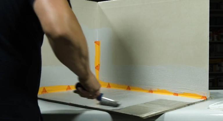 Подготовка гидроизоляционных материалов. Если используется цементный или цементно-полимерный состав, необходимо развести его в нужном количестве воды (соотношение указано на упаковке) или же в специальной жидкости, идущей в комплекте. После получения пастообразного материала ему нужно дать настояться в течение 10 минут. После этого производится повторное перемешивание и можно начинать нанесение. Готовые битумные или битумно-полимерные мастики необходимо хорошо перемешать перед использованием. Они поставляются в готовом виде, но требуют обработки строительным миксером, так как за время хранения жидкость могла расслоиться.