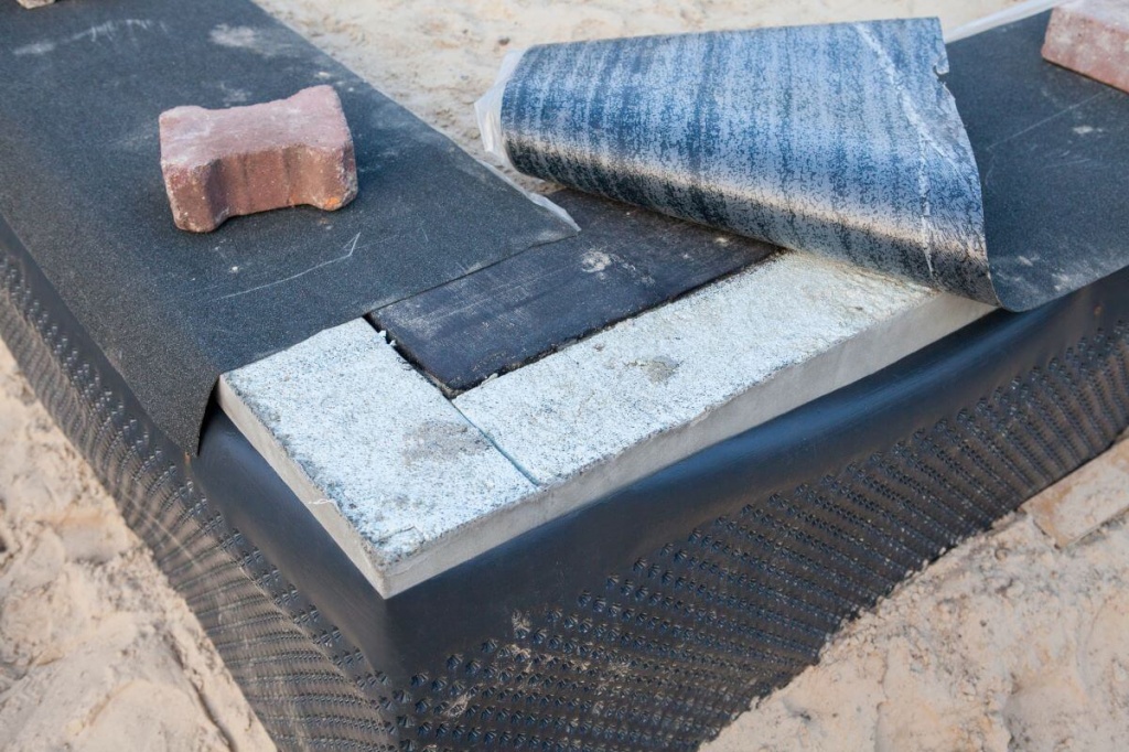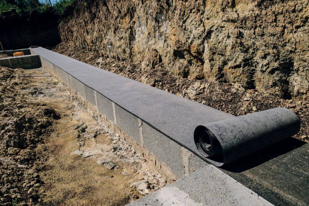 - на верхнюю часть фундамента – после заливки и застывания бетона верхняя часть покрывается рулонными, обмазочными или мембранными материалами на участке кладки внешних стен и внутренних перегородок. В случае с плитным фундаментом рекомендуется проводить обработку всей площади, чтобы в дальнейшем не столкнуться с сыростью под полами.