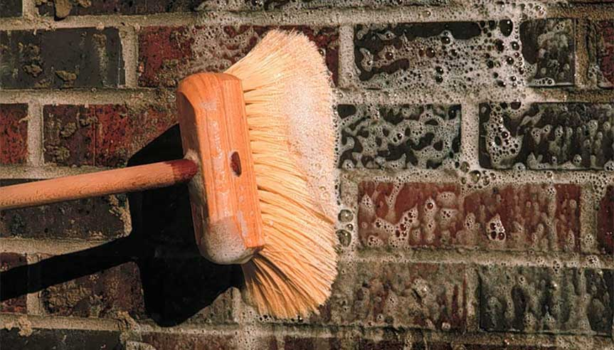 Средство для очистки наносится на кирпич с помощью валика, щетки или кисточки