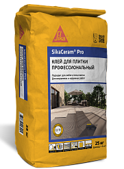 SikaCeram® Pro. Универсальный технологичный плиточный клей на цементной основе для внутренних и наружных работ. Подходит для работы со всеми видами керамической и каменной плитки. Получаемый из смеси раствор обладает высокой адгезией с такими основаниями, как ДСП и фанера, применяется при строительстве объектов, подверженных постоянному контакту с водой, например бассейнов, душевых и т. д. Преимуществами клея являются высокая эластичность, устойчивость к воздействию мороза и влаги.