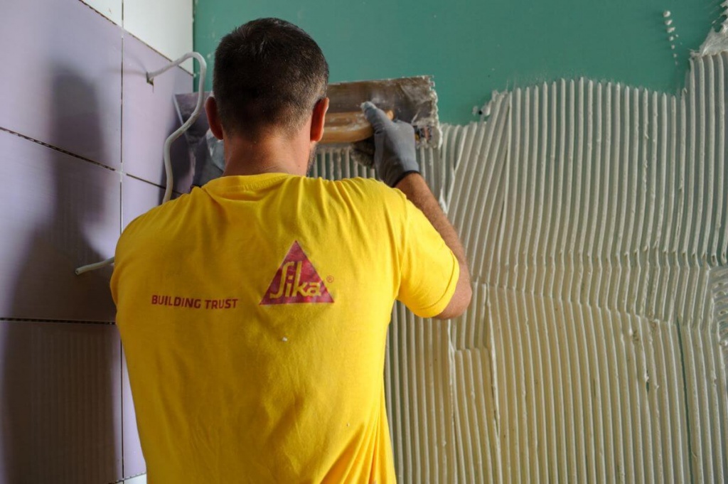 Лучше всего применять специализированные клеящие составы, исходя из типа плитки и условий эксплуатации облицовки. Так, клей для плитки в ванной должен обладать высокой влагостойкостью. Это, например, смесь SikaCeram® Universal. А для укладки керамогранита на подогреваемый пол лучше взять усиленные клей – SikaCeram® Pro.