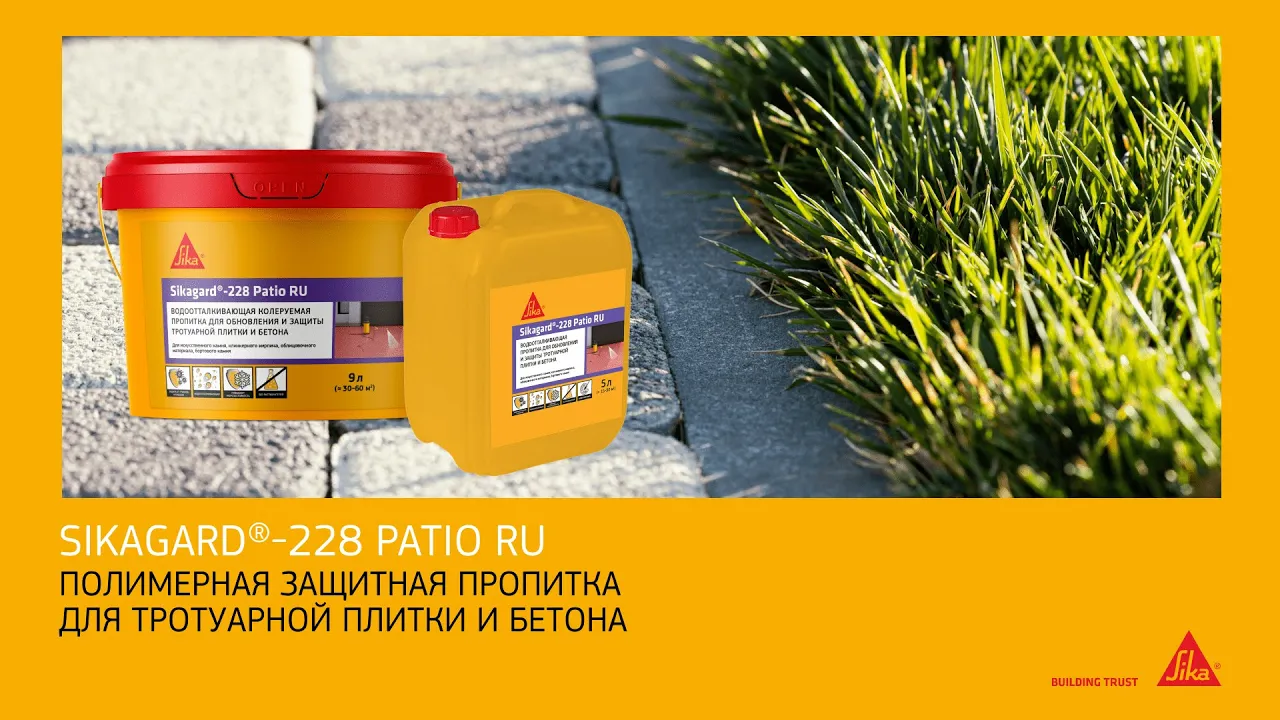 Sikagard®-228 Patio RU – водоотталкивающая колеруемая защитная пропитка на полимерной основе для обновления и защиты бетонных, цементно-песчаных и керамических изделий, повышающая стойкость поверхностей к агрессивным воздействиям окружающей среды. Обработанная поверхность на длительный период становится устойчивой к проникновению воды, агрессивных жидкостей и всевозможных загрязнений. Обработанная поверхность меньше загрязняется и упрощается последующее удаление загрязнений. Защитная пропитка может колероваться в тон основания. Освежает внешний вид поверхности.