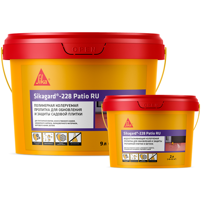 Sikagard®-228 Patio RU предназначен для обработки впитывающих оснований, таких как тротуарная плитка, бетонные дорожки, кирпичные фасады, и др. поверхности, которые имеют хорошие впитывающие способности. Может использоваться для нанесения на вертикальные и горизонтальные поверхности, как в колерованном виде, так и без колеровки. Применяется для тонировки основания в