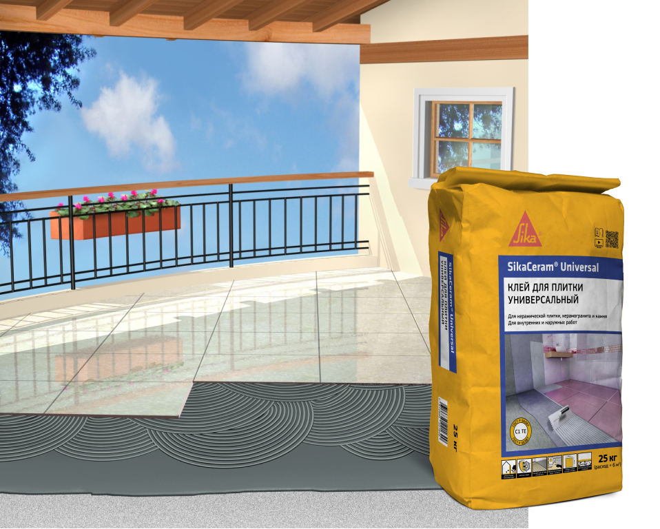 SikaCeram® Universal – универсальный цементный плиточный клей с повышенной стойкостью к сползанию и увеличенным открытым временем, предназначенный для внутренних и наружных работ по укладке керамической плитки, керамогранита, натурального и искусственного камня на недеформирующиеся минеральные основания. Соответствует классу C1 TE по ГОСТ Р 56387.