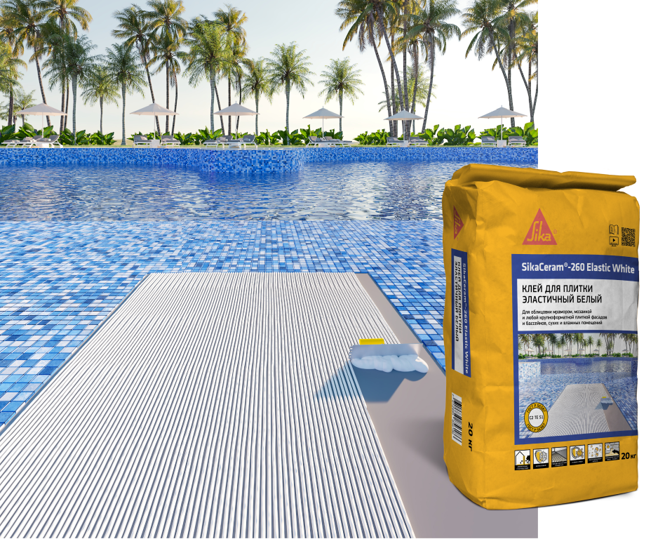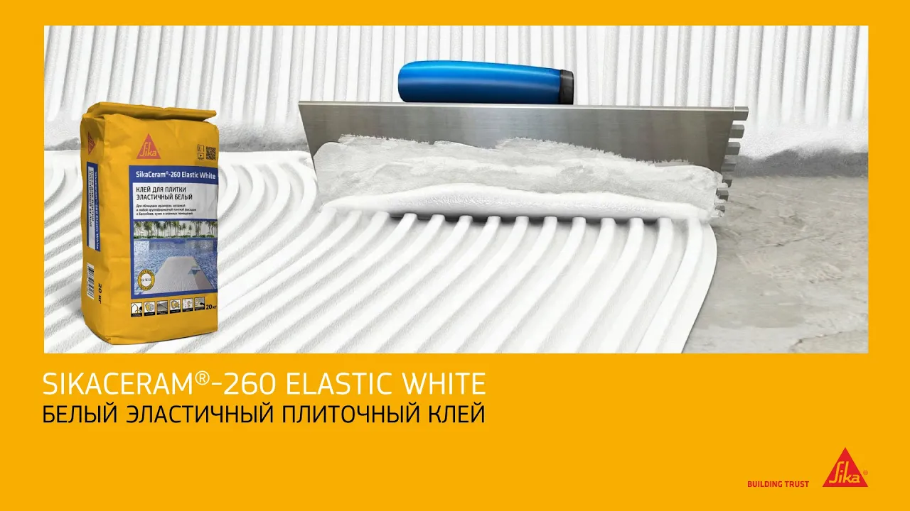 SikaCeram®-260 Elastic White - эластичный цементный плиточный клей с повышенной стойкостью к сползанию и увеличенным открытым временем, предназначенный для внутренних и наружных работ по укладке крупноформатной плитки и облицовки фасадов и бассейнов. Белого цвета. Соответствует классу C2 TE S1 по ГОСТ Р 56387