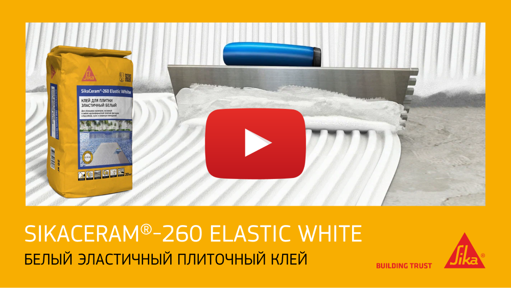 Новый видеоролик: SikaCeram®-260 Elastic White – эластичный белый плиточный клей для любых форматов плитки