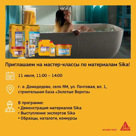 Приглашаем на мастер-классы по материалам Sika 11 июля на строительной базе «Золотые Ворота»!