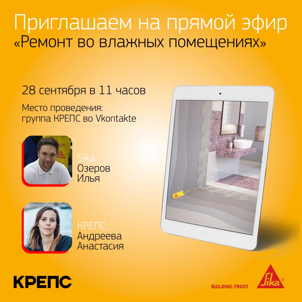 Приглашаем на прямой эфир от компаний Sika и КРЕПС в группе КРЕПС во Vkontakte 28 cентября в 11 часов!